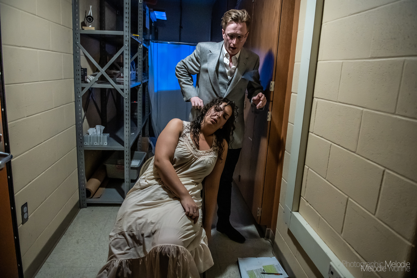 Purdue’s Shrader Workshop Series Graduate Student Workshop: Information for Foreigners by Griselda Gambaro and directed by Guest Director Anne Kelly (Switchboard Operations) with Movement Direction by Holly Jaycox runs April 24, 25, 26 at the Yue-Kong Pao Hall of Visual and Performing Arts. Photo cred Melodie Yvonne