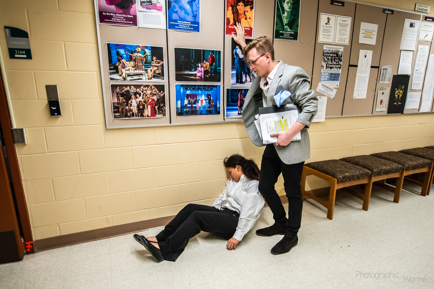 Purdue’s Shrader Workshop Series Graduate Student Workshop: Information for Foreigners by Griselda Gambaro and directed by Guest Director Anne Kelly (Switchboard Operations) with Movement Direction by Holly Jaycox runs April 24, 25, 26 at the Yue-Kong Pao Hall of Visual and Performing Arts. Photo cred Melodie Yvonne