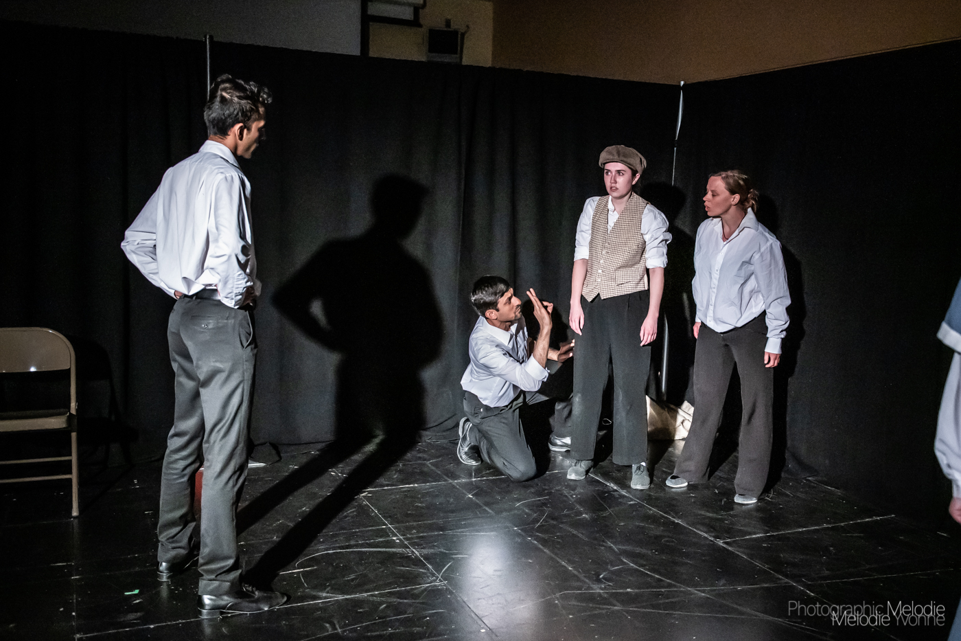 Purdue’s Shrader Workshop Series Graduate Student Workshop: Information for Foreigners by Griselda Gambaro and directed by Guest Director Anne Kelly (Switchboard Operations) with Movement Direction by Holly Jaycox runs April 24, 25, 26 at the Yue-Kong Pao Hall of Visual and Performing Arts. Photo cred Melodie Yvonne