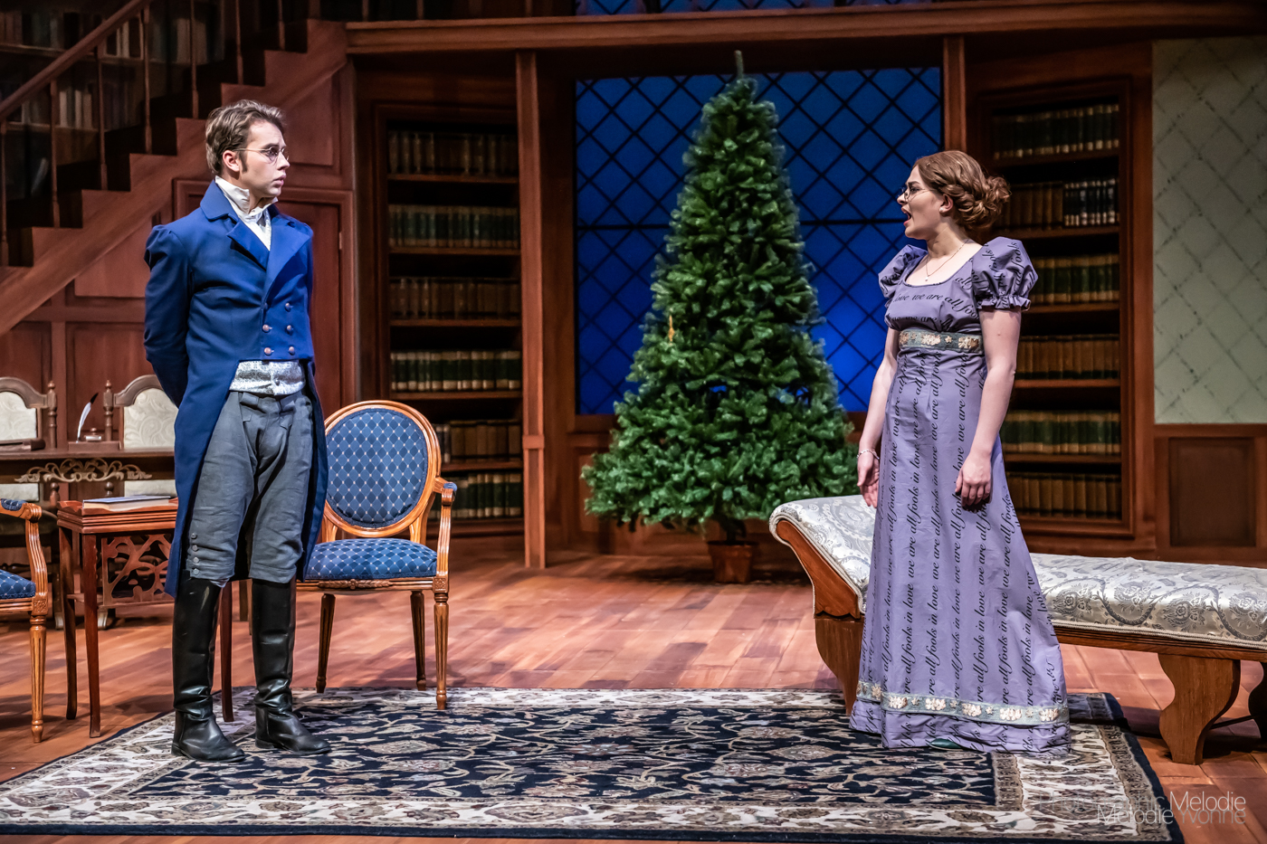 Purdue Theatre’s production of Miss Bennet: Christmas at Pemberley by Lauren Gunderson and Margot Melcon and directed by Kristine Holtvedt is an extraordinary sequel to Pride & Prejudice performed by a phenomenal cast. Show runs November 8 – 17, 2019 at the Nancy T. Hansen Theatre in Yue-Kong Pao Hall of Visual and Performing Arts. Photo cred Melodie Yvonne