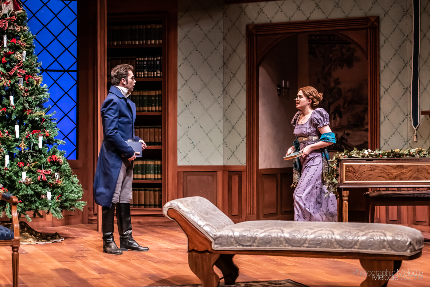 Purdue Theatre’s production of Miss Bennet: Christmas at Pemberley by Lauren Gunderson and Margot Melcon and directed by Kristine Holtvedt is an extraordinary sequel to Pride & Prejudice performed by a phenomenal cast. Show runs November 8 – 17, 2019 at the Nancy T. Hansen Theatre in Yue-Kong Pao Hall of Visual and Performing Arts. Photo cred Melodie Yvonne