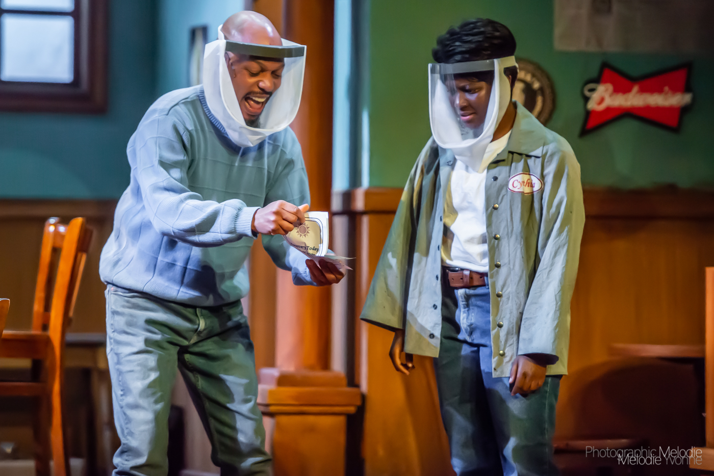 Purdue Theatre’s production of Sweat by Lynn Nottage and directed by William P. Caise is a frighteningly accurate depiction of factory life in a post-industrial America brought to life by a brilliant cast on stage at the Nancy T. Hansen Theatre in Yue-Kong Pao Hall of Visual and Performing Arts in West Lafayette, Indiana. Photo cred Melodie Yvonne