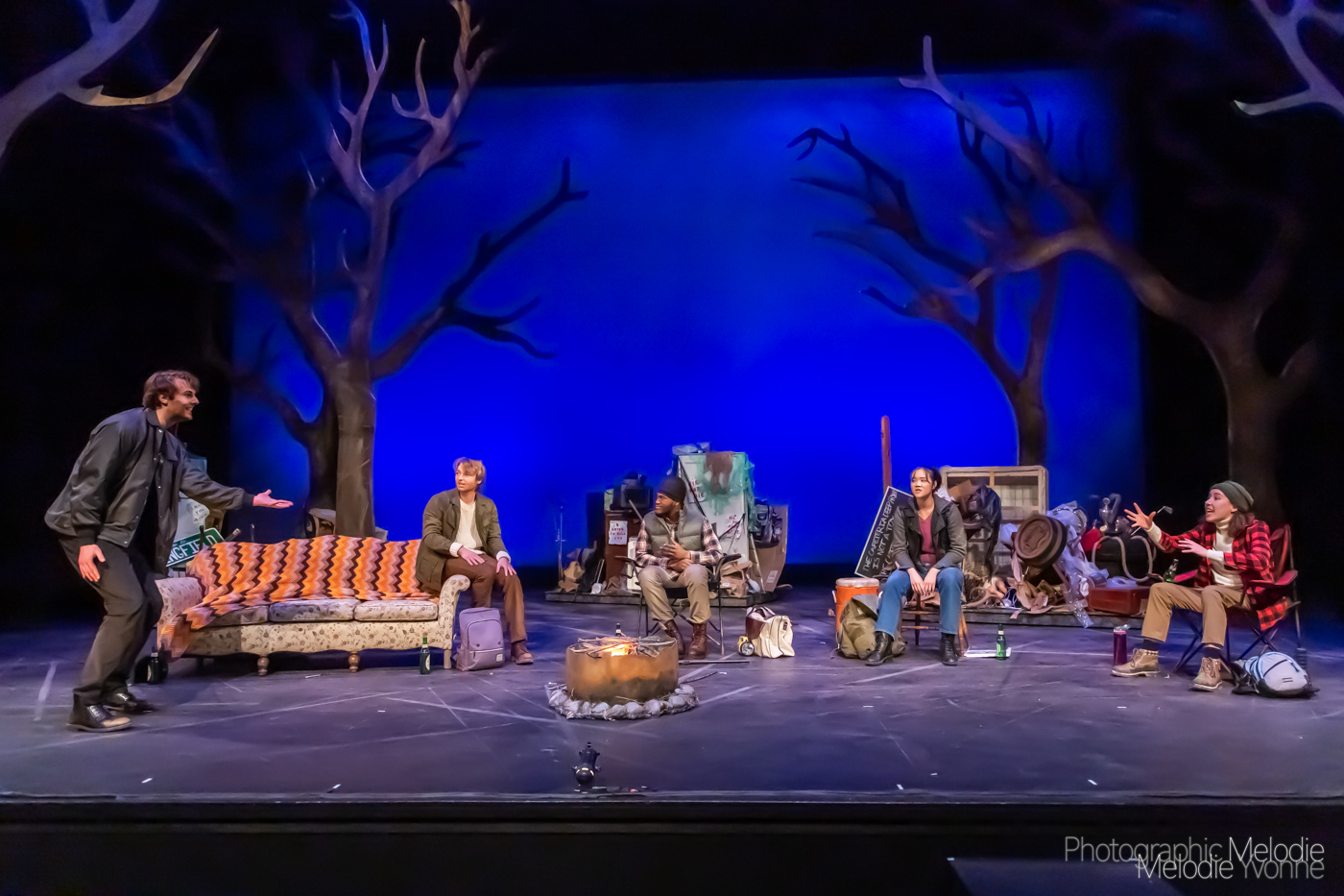 Purdue Theatre’s production of Anne Washburn’s Mr. Burns: A Post Electric Play is an astounding adventure performed by a phenomenal cast on the grand stage at the Nancy T. Hansen Theatre in West Lafayette, Indiana. Photo cred Melodie Yvonne