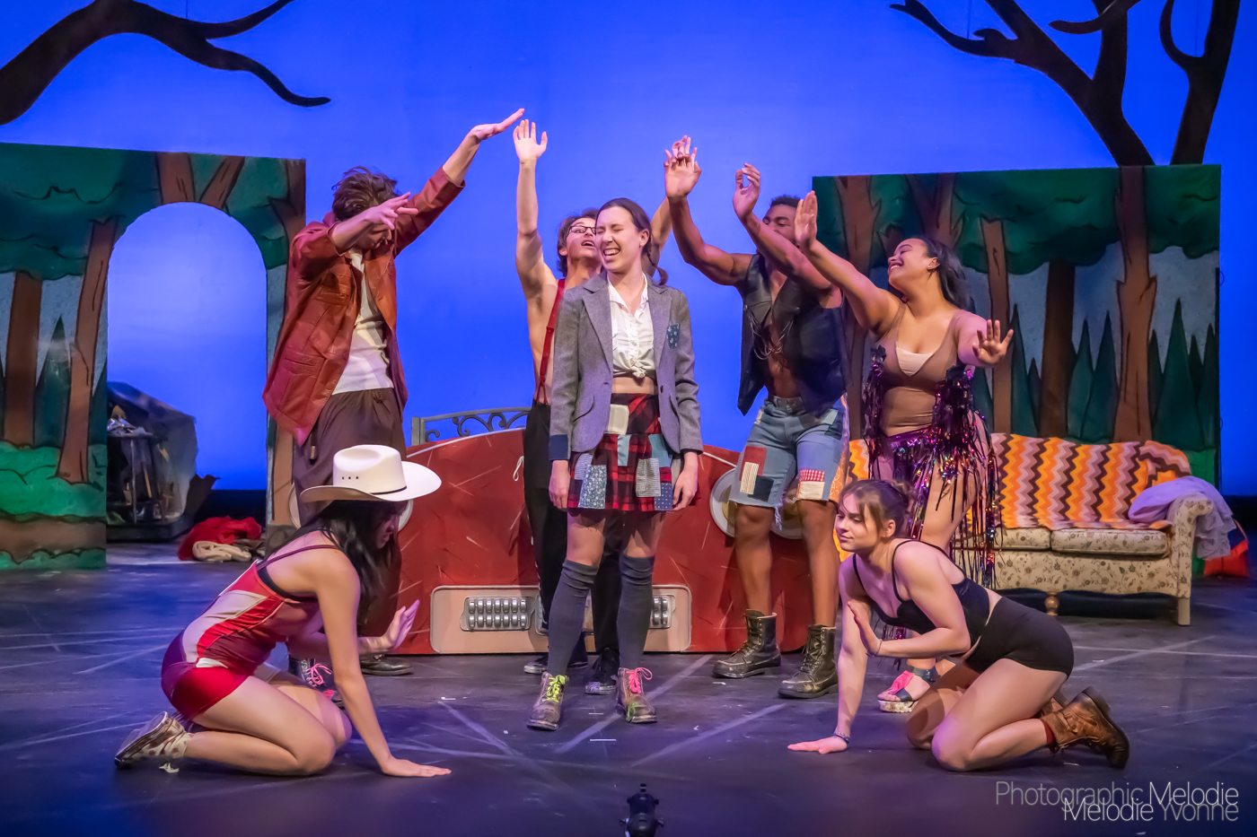 Purdue Theatre’s production of Anne Washburn’s Mr. Burns: A Post Electric Play is an astounding adventure performed by a phenomenal cast on the grand stage at the Nancy T. Hansen Theatre in West Lafayette, Indiana. Photo cred Melodie Yvonne