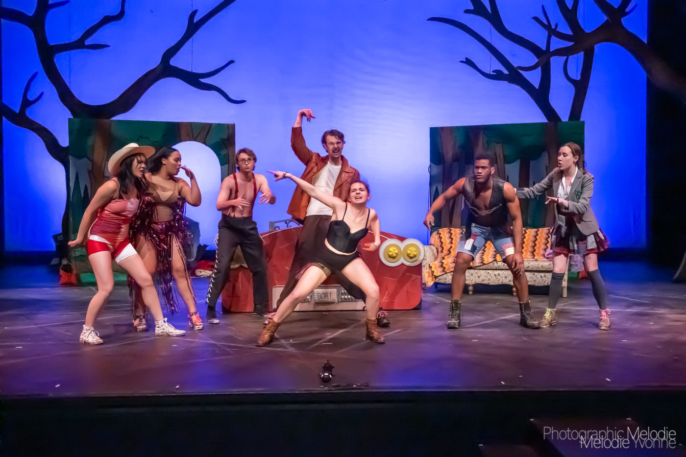Purdue Theatre’s production of Anne Washburn’s Mr. Burns: A Post Electric Play is an astounding adventure performed by a phenomenal cast on the grand stage at the Nancy T. Hansen Theatre in West Lafayette, Indiana. Photo cred Melodie Yvonne