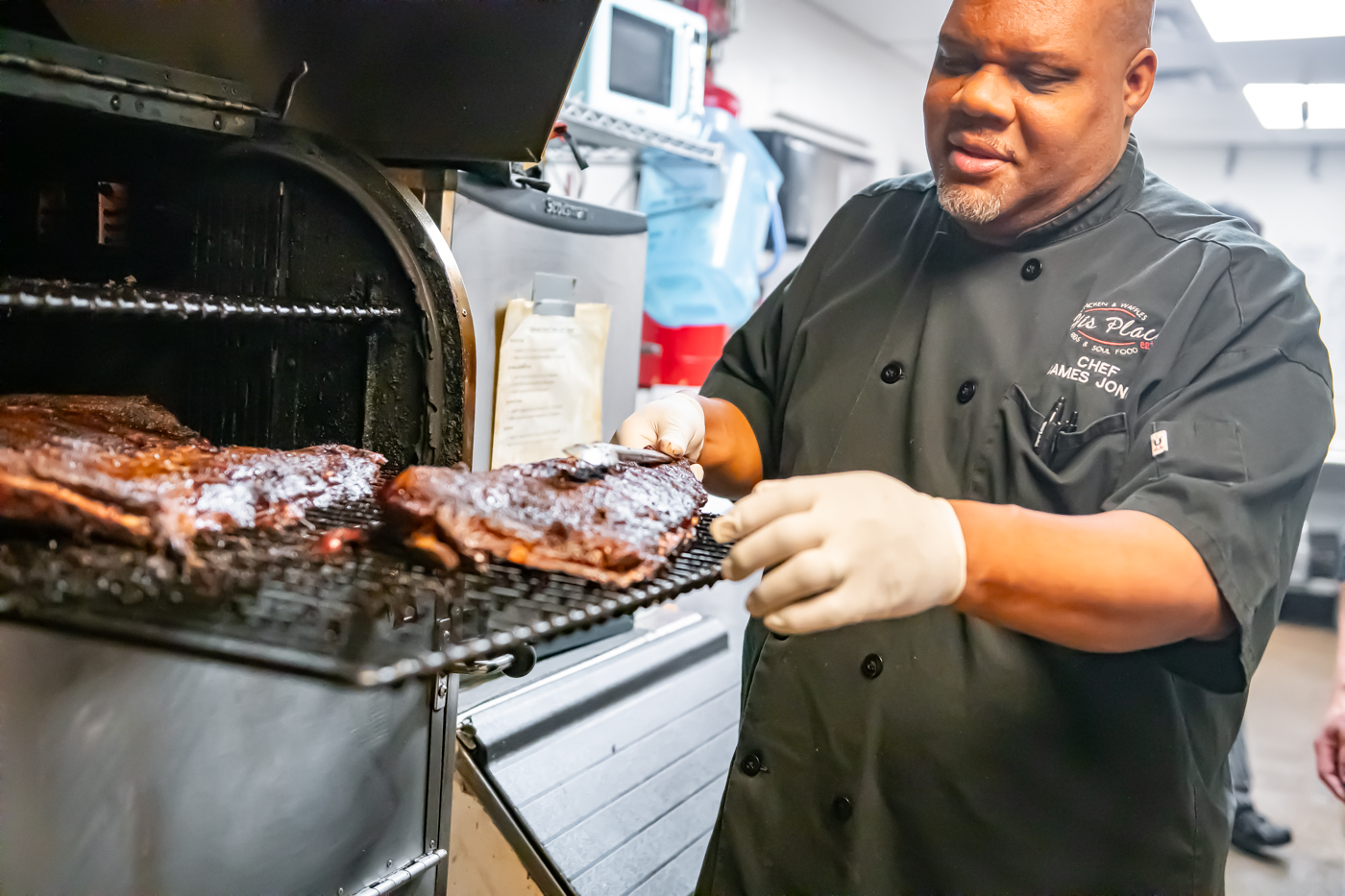 His Place Eatery’s Chef James Jones and crew prepare spare ribs for the incoming devoted diners. Photo cred Melodie Yvonne