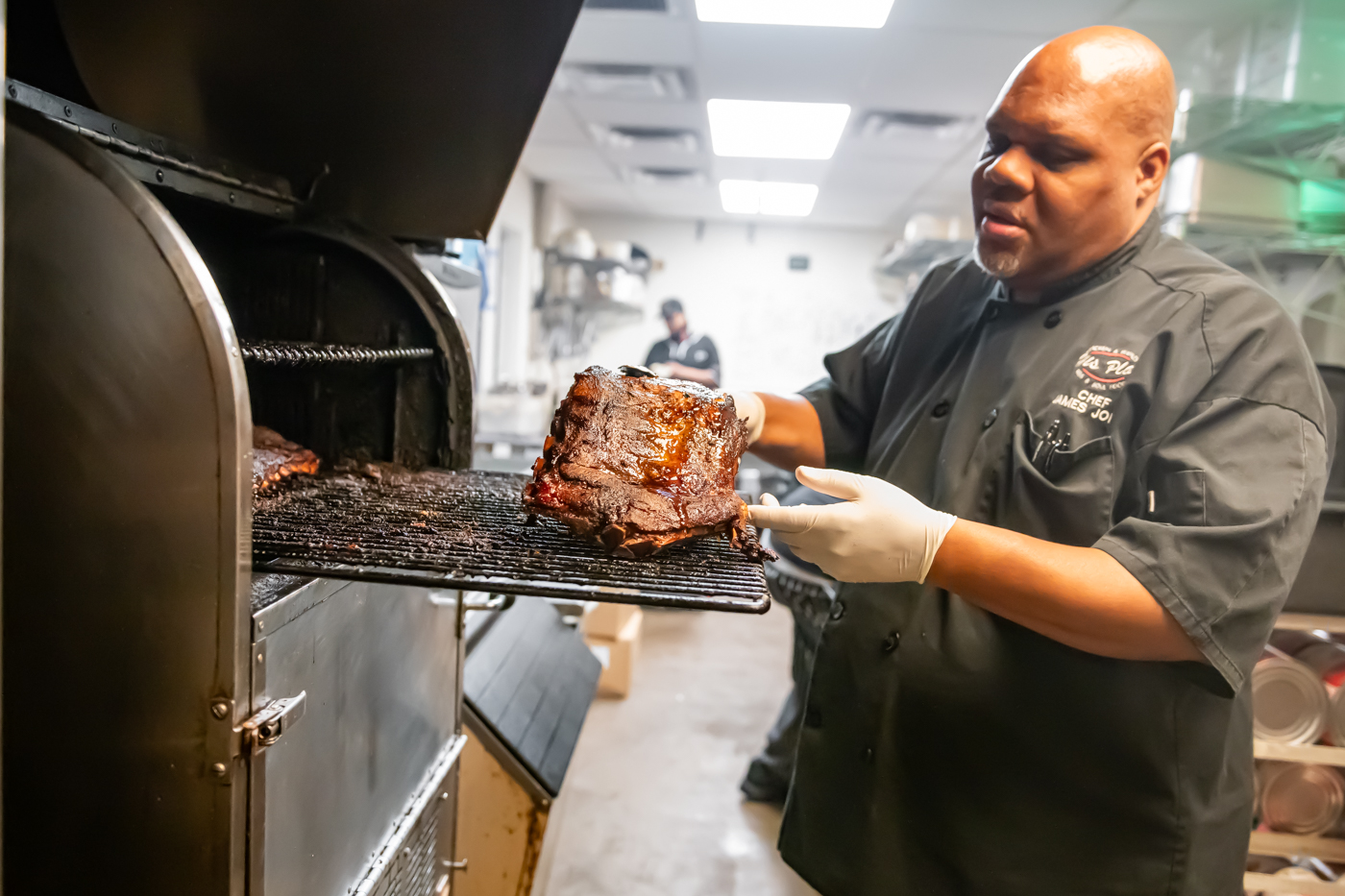 His Place Eatery’s Chef James Jones and crew prepare spare ribs for the incoming devoted diners. Photo cred Melodie Yvonne