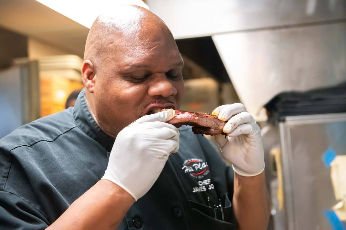 His Place Eatery’s Chef James Jones and crew prepare spare ribs for the incoming devoted diners. Photo cred Melodie Yvonne