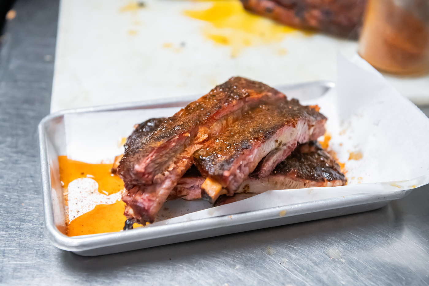 His Place Eatery’s Chef James Jones and crew prepare spare ribs for the incoming devoted diners. Photo cred Melodie Yvonne