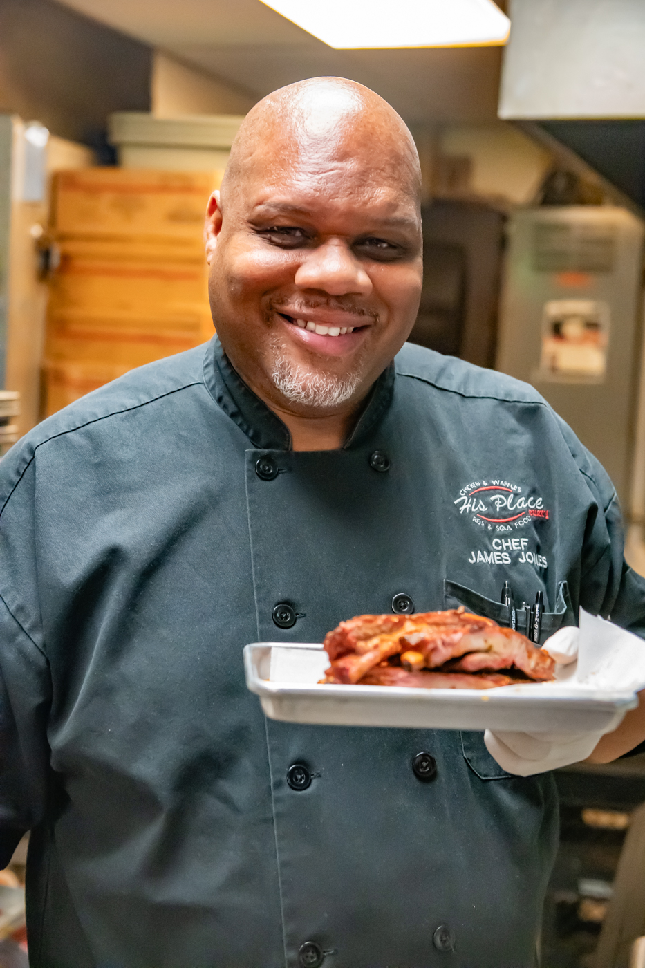 His Place Eatery’s Chef James Jones and crew prepare spare ribs for the incoming devoted diners. Photo cred Melodie Yvonne
