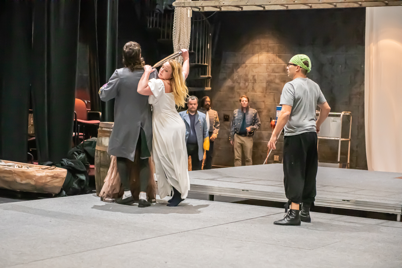 The cast and crew of locally written and produced “Just Beginning” by Laura Krell performing a dress rehearsal May 28, 2024, at the Franklin College Theatre in Franklin.