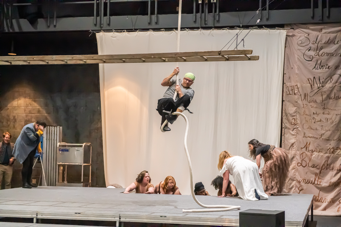 The cast and crew of locally written and produced “Just Beginning” by Laura Krell performing a dress rehearsal May 28, 2024, at the Franklin College Theatre in Franklin.