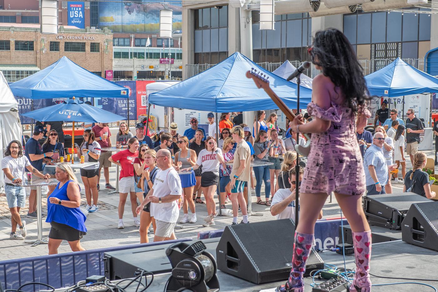 The Olympic Swimming Trials festivities included incredible sets from DJ Big Baby, Sizzy Rocket, and Zee Machine June 22, 2024, on Georgia Street in Downtown Indy. Photo cred Melodie Yvonne