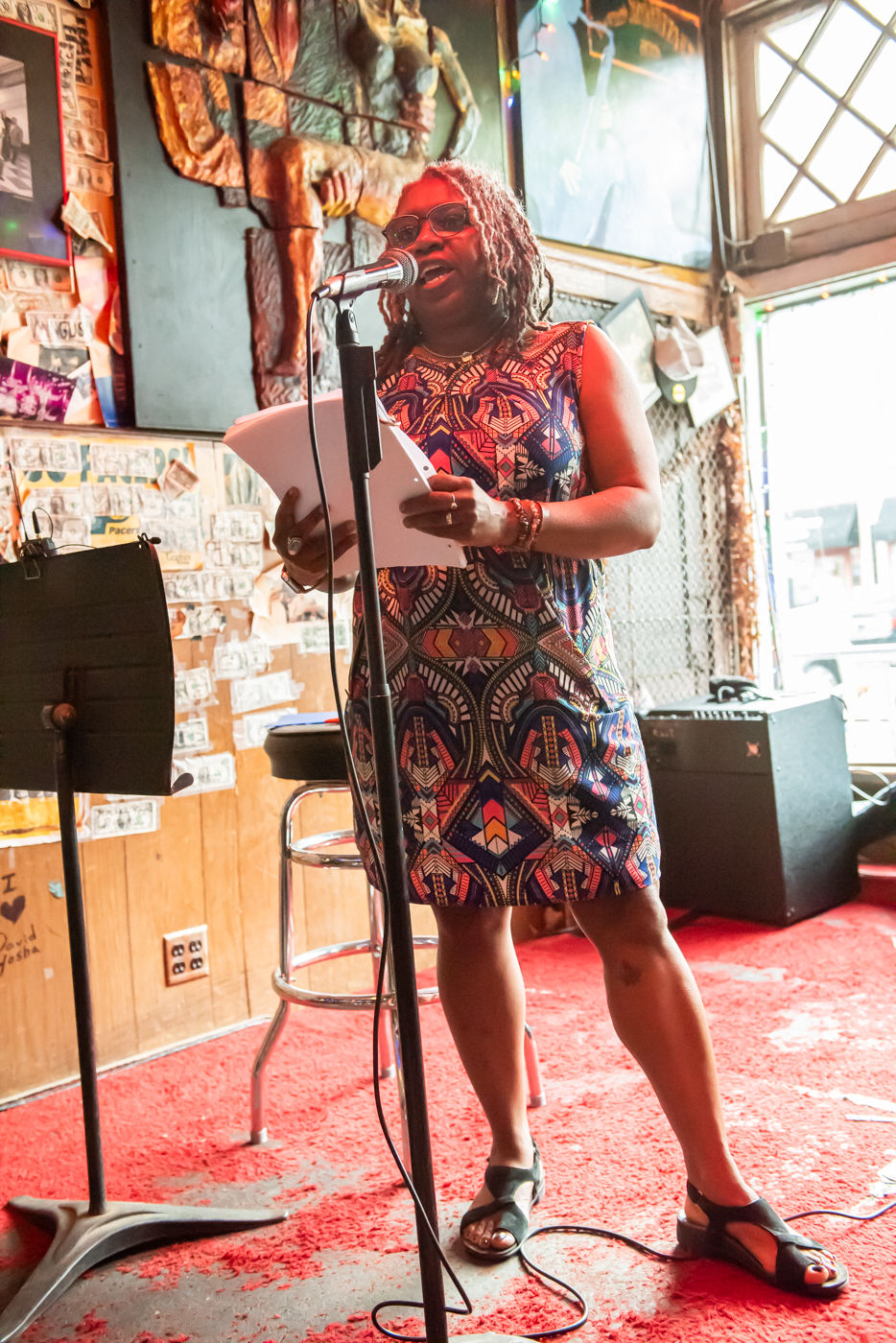 Original members of the Free People’s Workshop as well as many other artists gather to perform poetry, share stories, and celebrate Etheridge Knight August 1, 2024, at Chatterbox in Indianapolis.