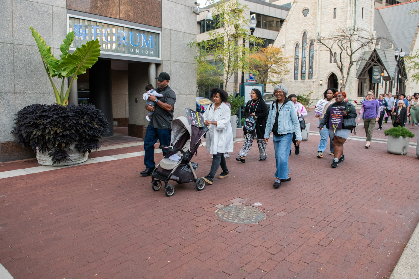 The Morgan Family leads the march around Monument Circle during the 34th Annual Domestic Violence Commemoration Oct. 9, 2024, at Christ Church Cathedral in Indianapolis.