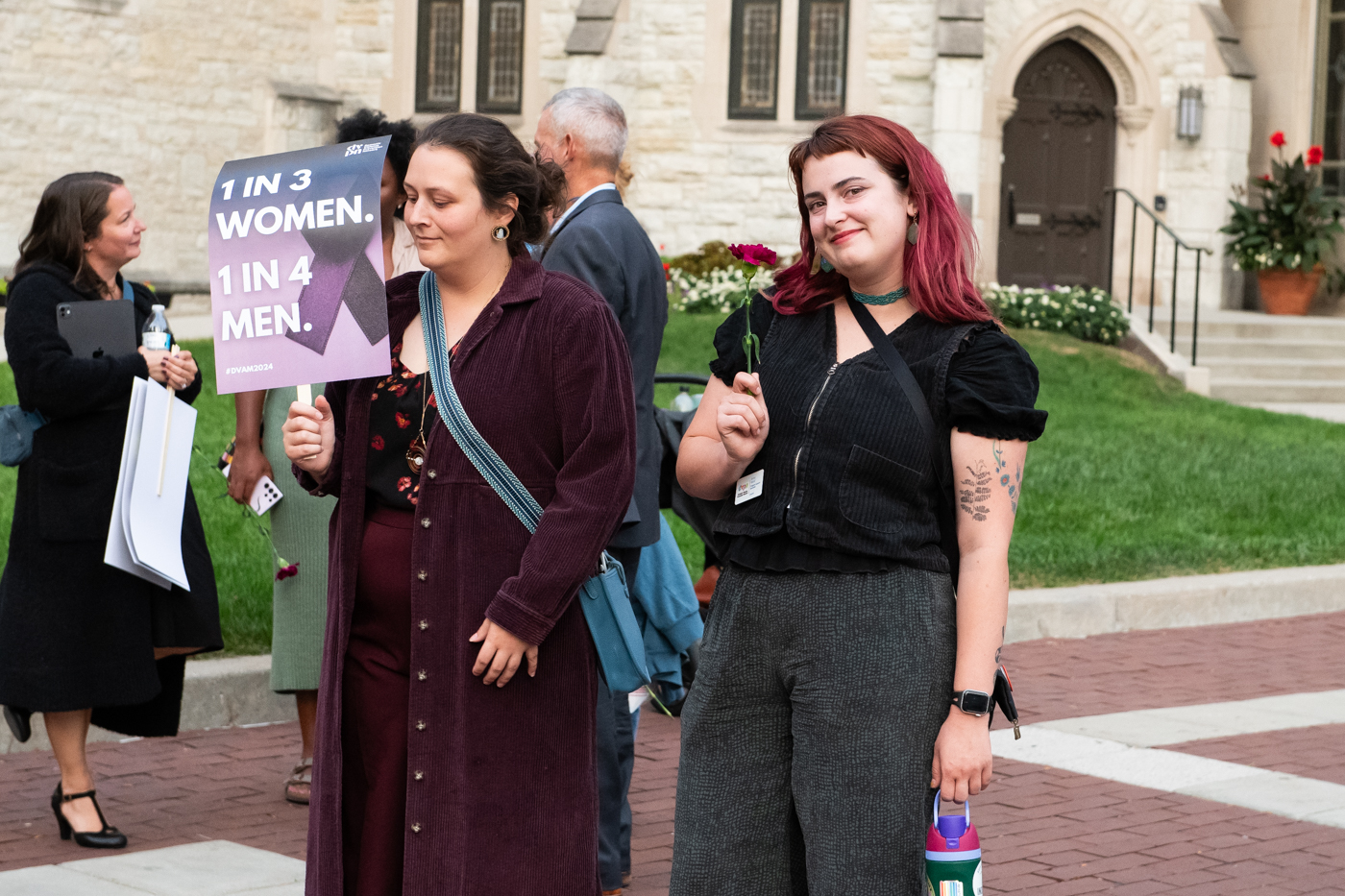 Allies march around Monument Circle during the 34th Annual Domestic Violence Commemoration Oct. 9, 2024, at Christ Church Cathedral in Indianapolis.