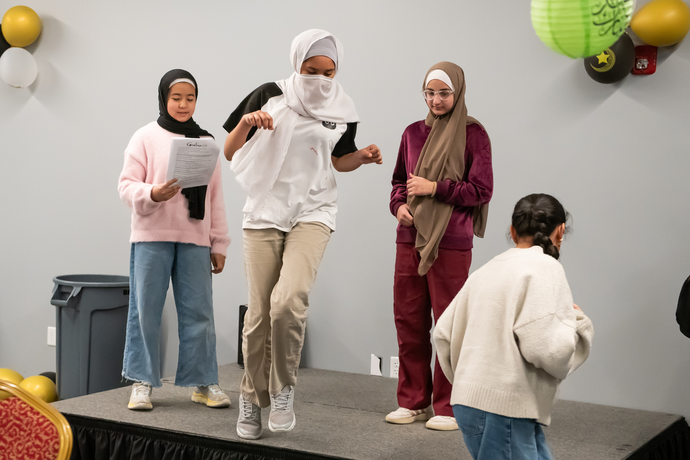 Performers run through a scene during the rehearsal for Lantern Islamic Theater Company’s production of “Coraline” March 28, 2026 at Visionary I in Fishers.
