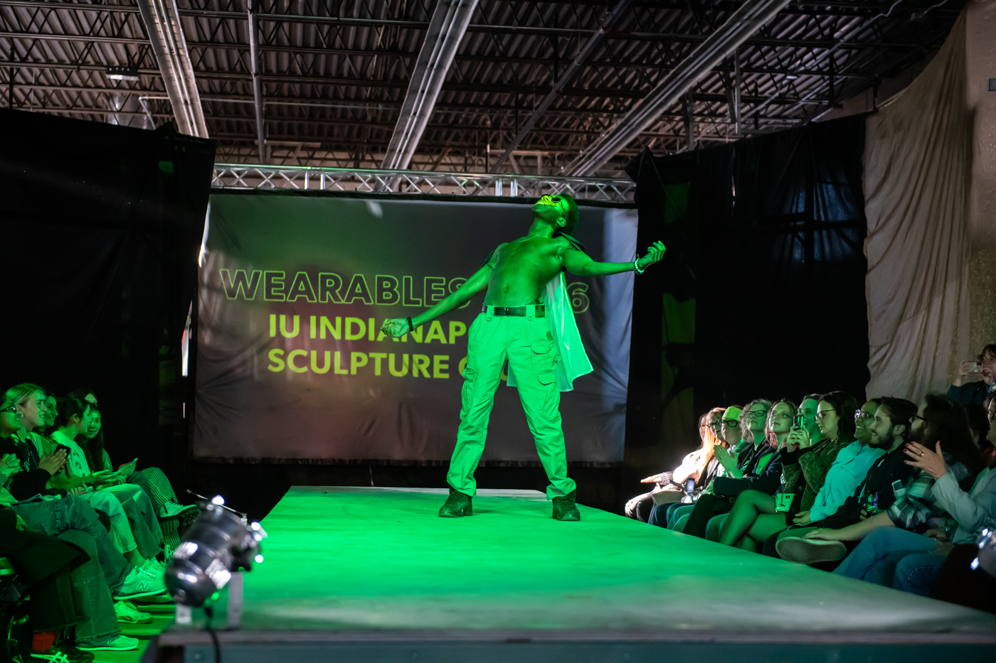 A model walks the runway during the 22nd Annual Herron Sculpture Club Wearable Art show April 7, 2026, at the Sidney & Lois Eskenazi Fine Arts Center in Indianapolis.
