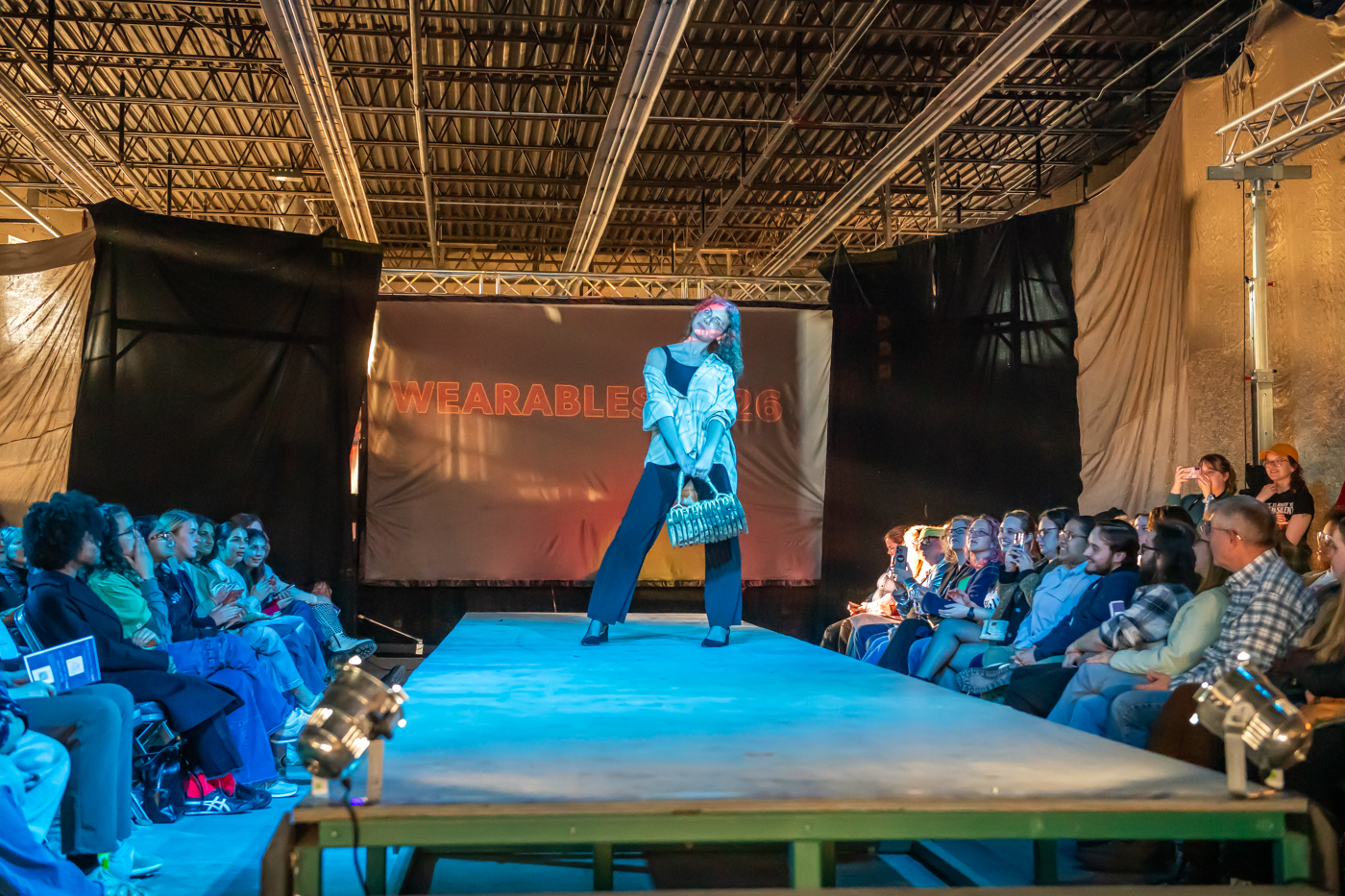 Ellie Streveler poses on the runway during the 22nd Annual Herron Sculpture Club Wearable Art show April 7, 2026, at the Sidney & Lois Eskenazi Fine Arts Center in Indianapolis.