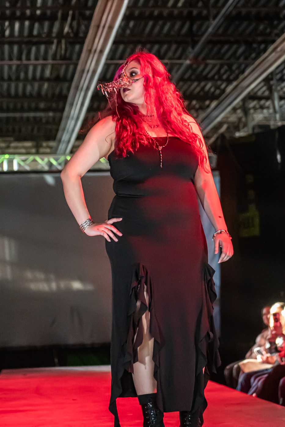 Miche Hernandez poses on the runway during the 22nd Annual Herron Sculpture Club Wearable Art show April 7, 2026, at the Sidney & Lois Eskenazi Fine Arts Center in Indianapolis.